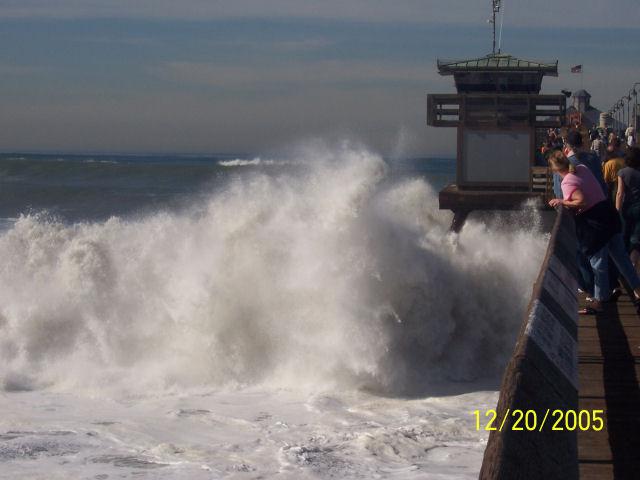 A big wave that hit San Diego's beach with 15 to 18 foot waves
